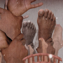 “Epidermis-Ornamentik und Beinballet. Das Bild Kollibri umsurrter Fingerpflanzen eröffnet eine Science Fiction Reise in surreale Landschaften fleischlicher Konsistenz. Yellow Submarine meets Monthy Python.”